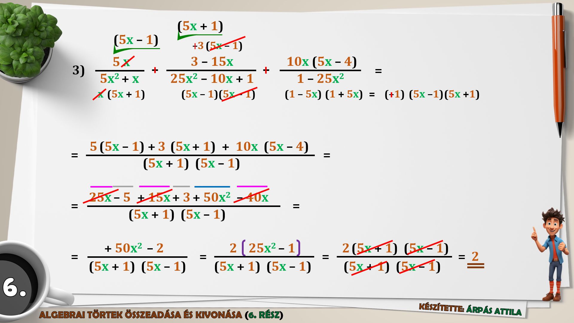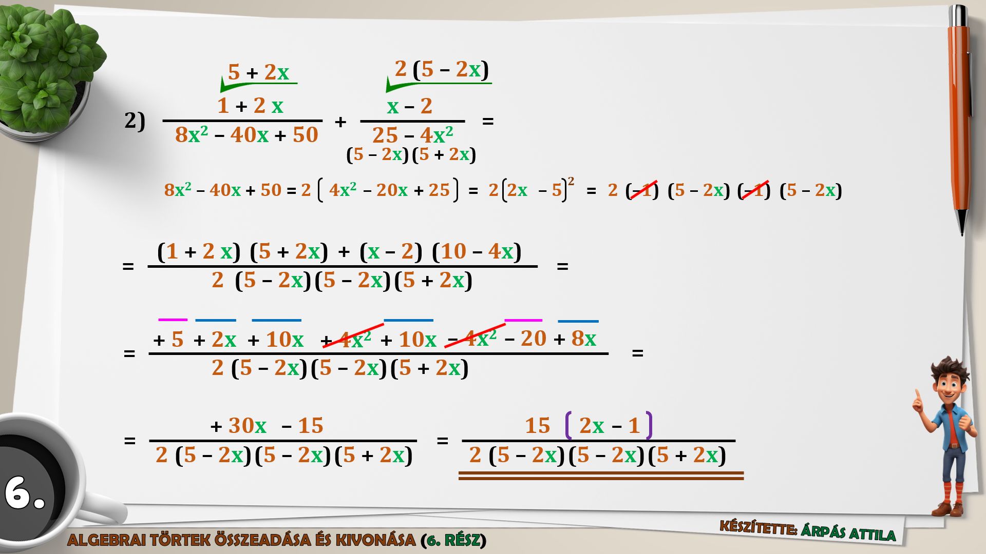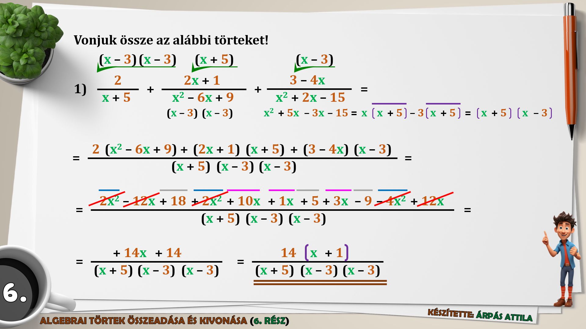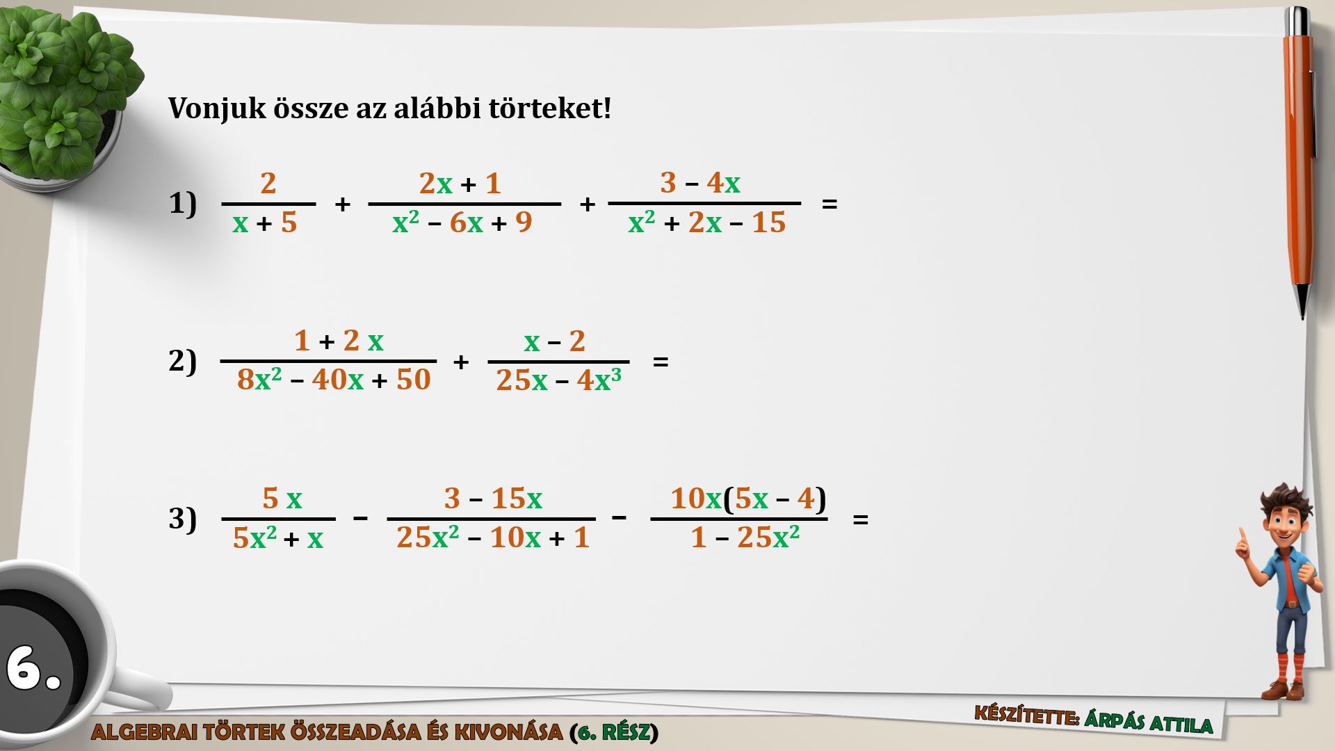 6) ALGEBRAI TÖRTEK ÖSSZEADÁSA ÉS KIVONÁSA (NEVEZŐ - KÖZÖS TAG, NÉGYZETEK KÜLÖNBSÉGE, BINOM NÉGYZETE)