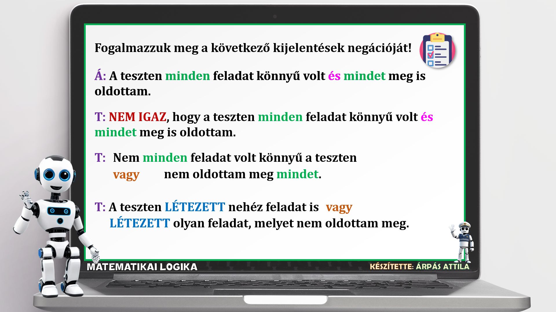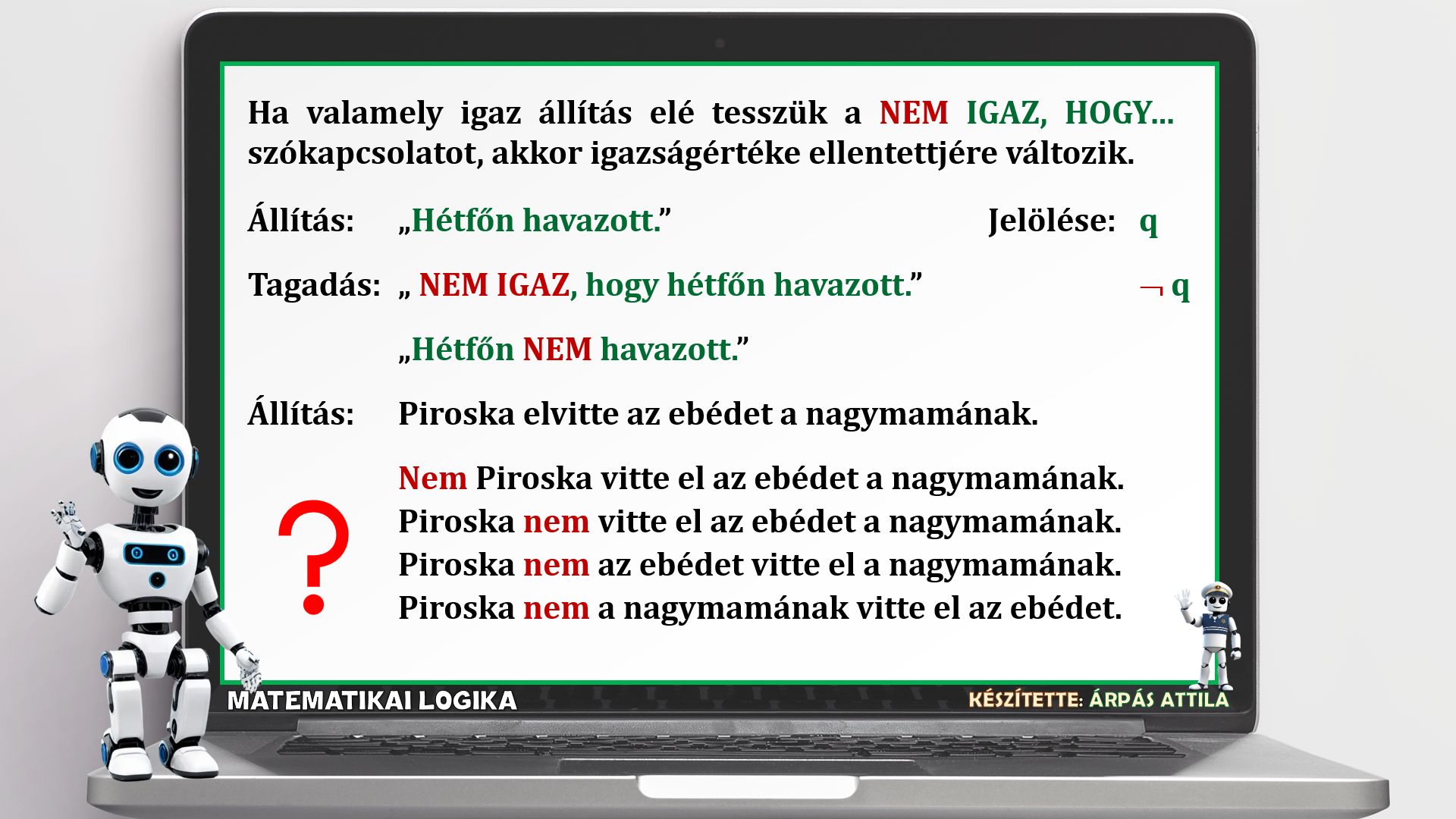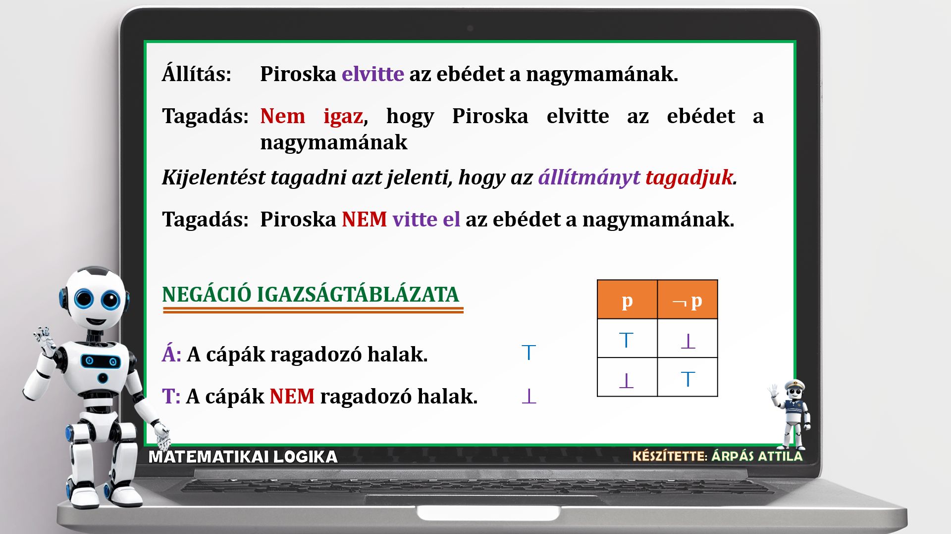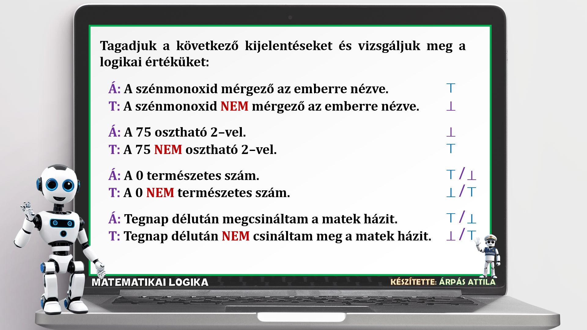 3) LOGIKAI MŰVELETEK – NEGÁCIÓ (TAGADÁS, NEM) 669