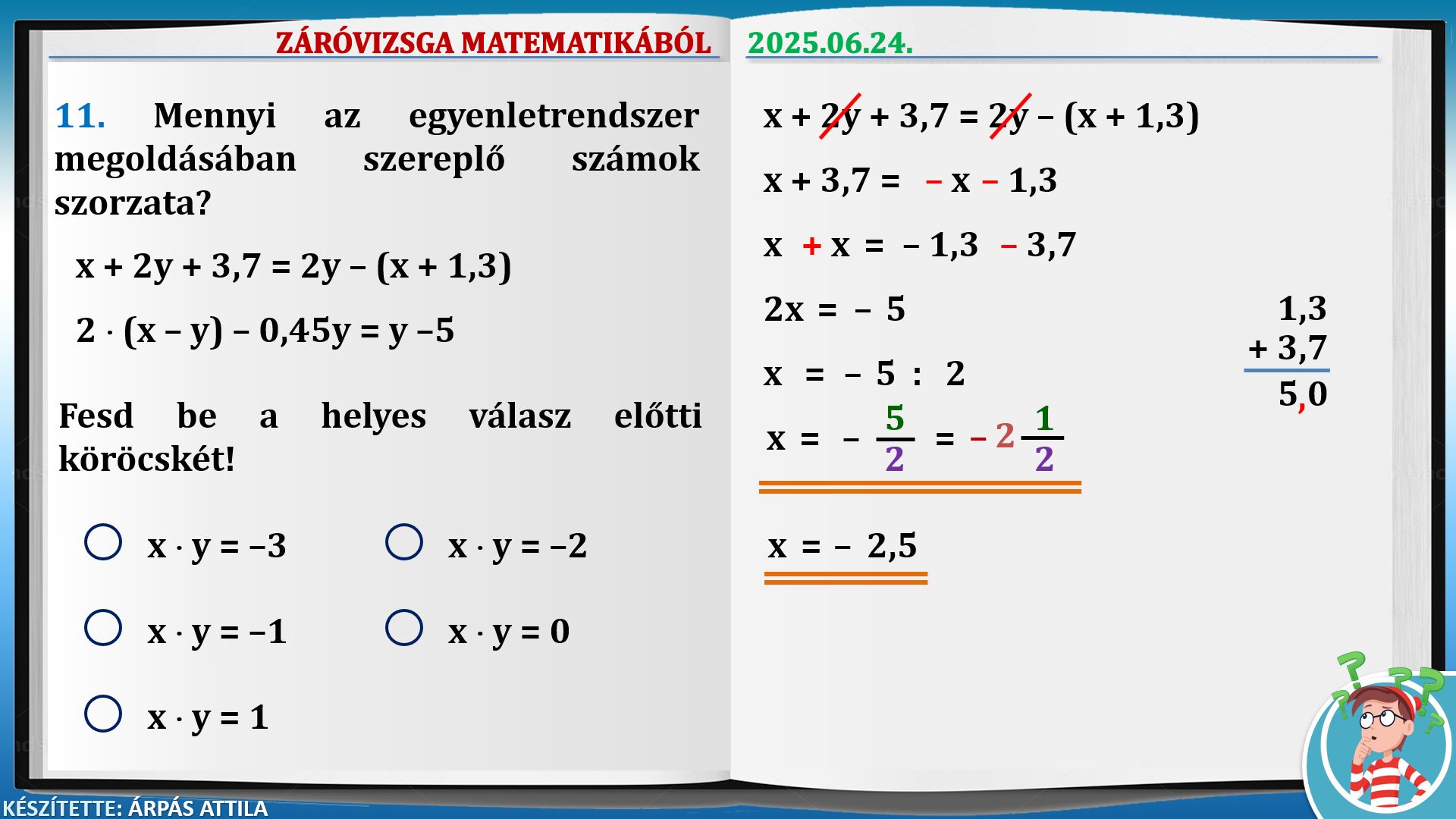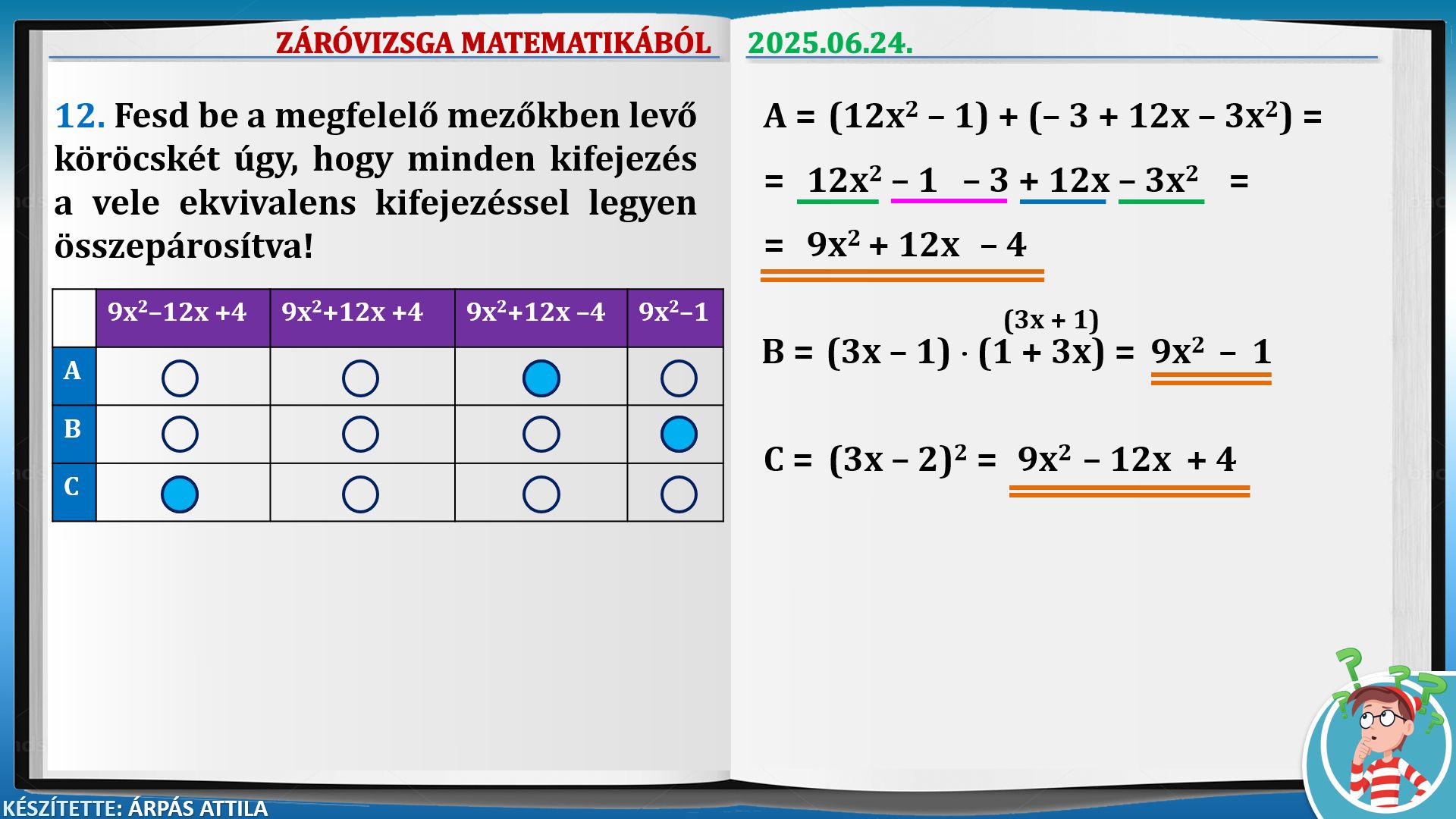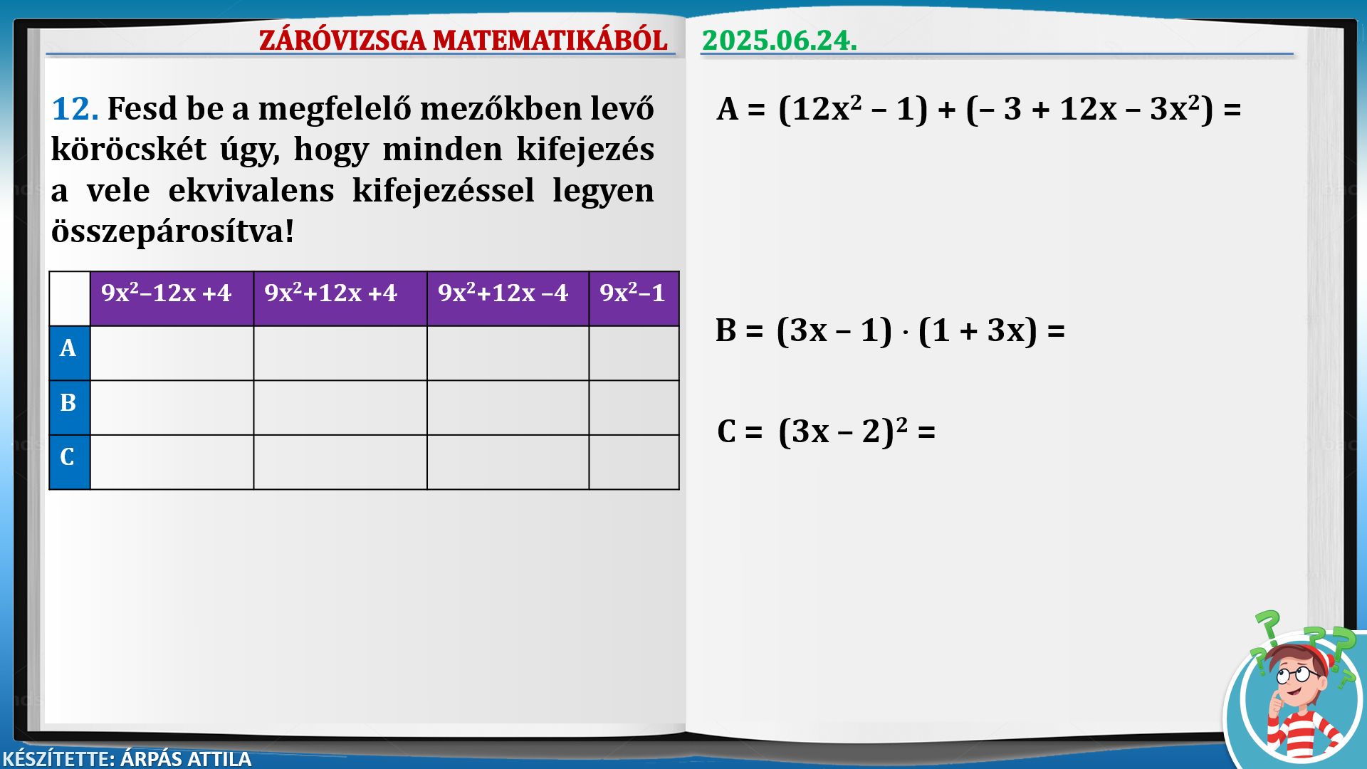 ZÁRÓVIZSGA MATEMATIKÁBÓL (2025.06.24.) – ALAPSZINT
